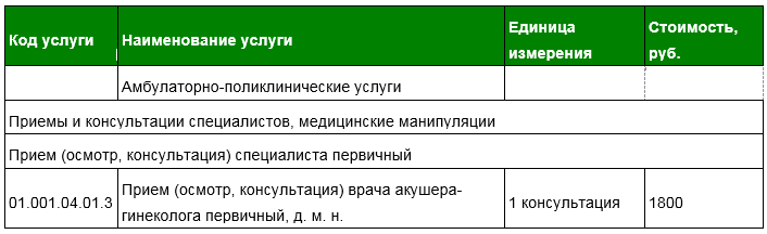 ПРИМЕР: Какие разделы включить в прейскурант медорганизации